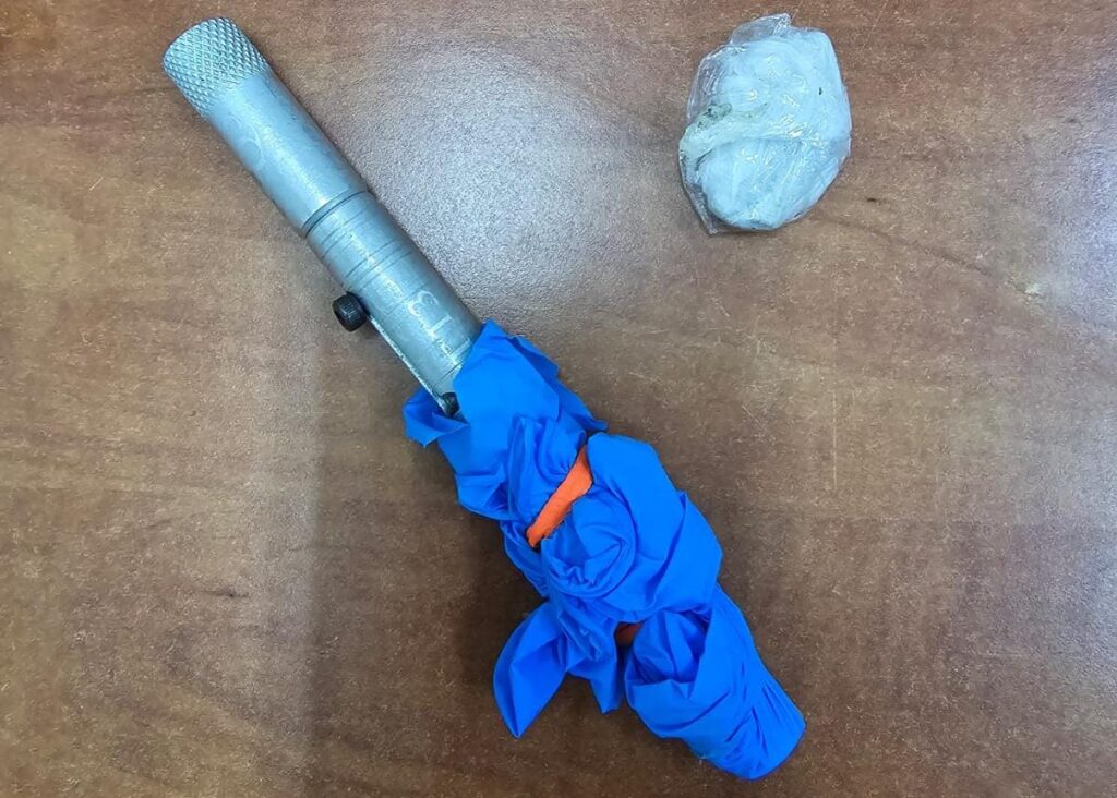 במהלך החיפוש ברכב, הבלשים איתרו ותפסו אקדח מאולתר "עט" עם כדור בקנה. ברשות החשוד נתפס סם מסוג קוקאין במשקל 9 גרם.