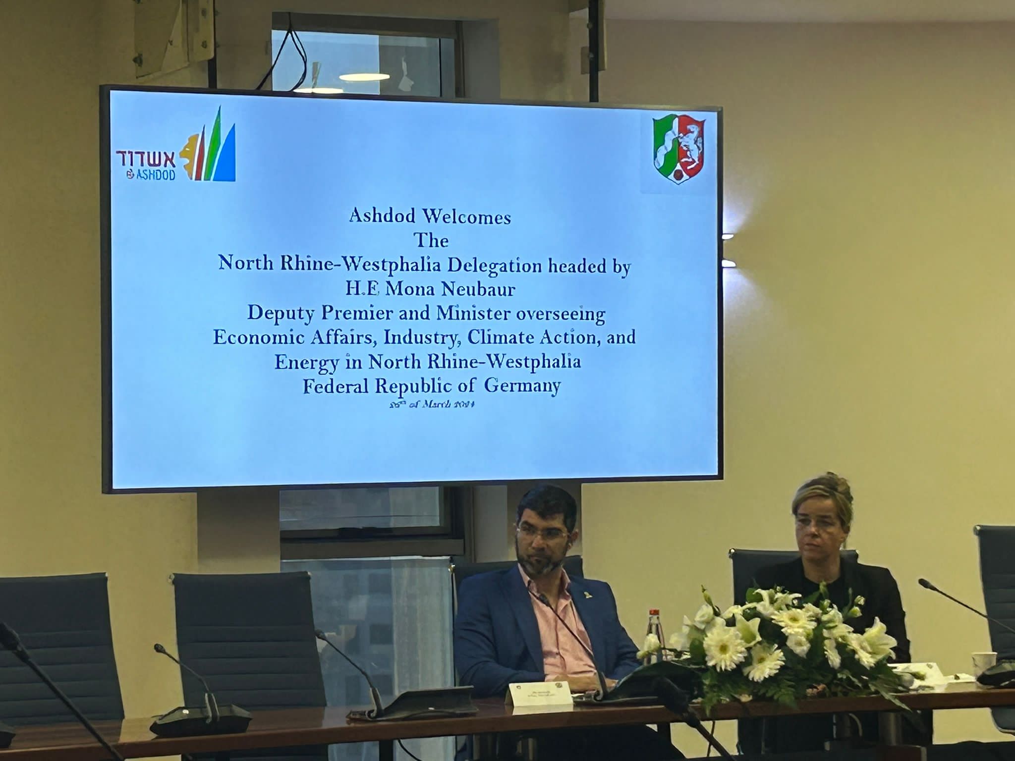 עו"ד אלי נכט, סגן ראש עיריית אשדוד, קיבל בברכה את גב' מונה נויבאור סגנית ראש הממשלה והשר לענייני כלכלה, תעשייה, פעולת אקלים ואנרגיה של מדינת נורדריין-וסטפאליה בגרמניה, יחד עם פמלייתה.