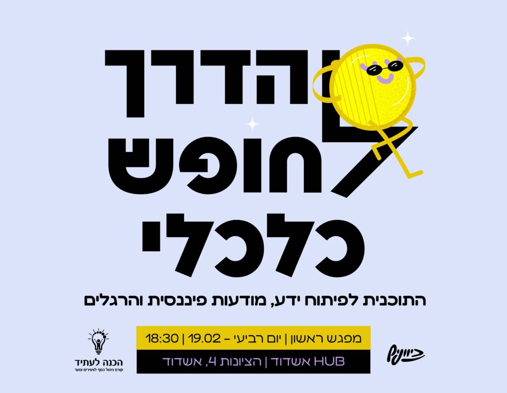 "המפגשים יתקיימו בכל יום רביעי, החל מ-19.02, בשעה 18:30, במרכז "כיוונים" באשדוד. כל מפגש יעסוק בנושא חשוב אחר בעולם הפיננסים, כך שהצעירים יצאו עם כלים שימושיים לכל שלב בחייהם" אומרים בכיוונים ומבטיחים כי "במהלך התוכנית, הצעירים יקבלו כלים שיעזרו להם להתנהל בצורה נכונה עם כסף, יבינו איך לנהל תקציב אישי, ילמדו איך להשקיע בעתיד ויפתחו הרגלים שיביאו אותם לחופש כלכלי. המפגשים הם לא רק מידע – הם פרקטיקה שתוכל להנחות אותם לאורך הדרך". את כל זה יוכלו לקבל במחיר כרטיס של 50 ₪ בלבד לכל סדרת המפגשים. לצעירים גם תהיה גישה לכל החומר לאורך כל הדרך.