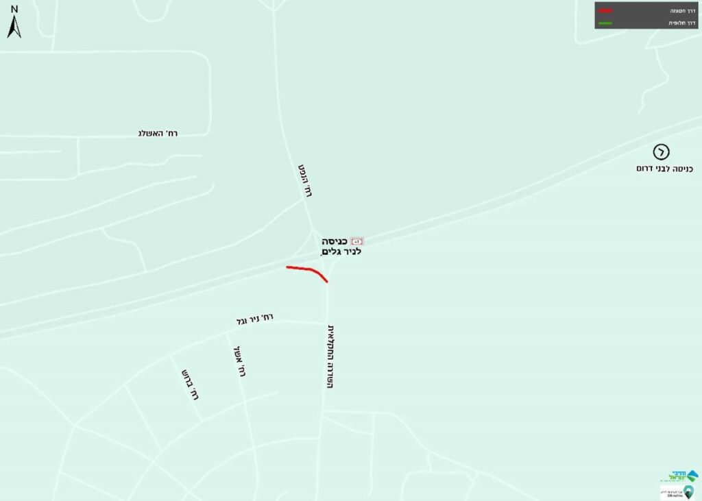 הכניסה לישוב תתאפשר לבאים מכיוון מזרח (כיוון כביש 4) ולבאים מכיוון צפון (רח' הנפט אזור תעשייה אשדוד) בלבד.