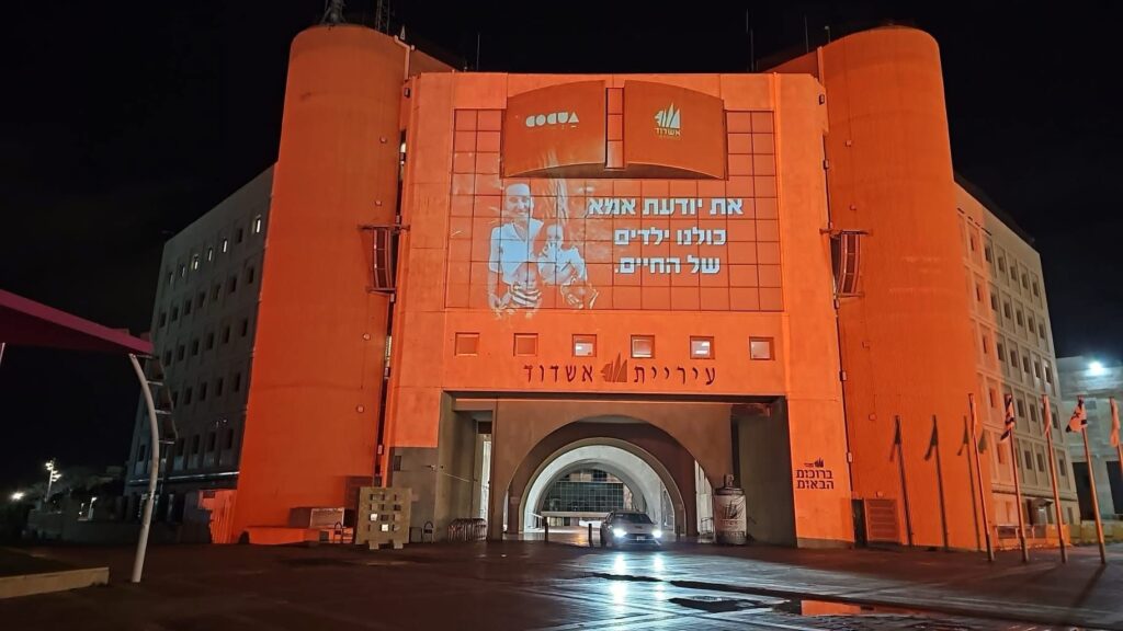 הכיכרות והבניין בעיר אשדוד הוארו בכתום – צבע הזיכרון והכאב.