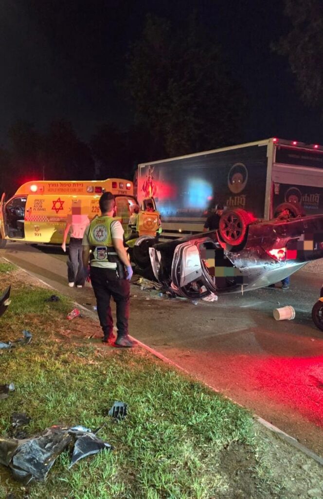 משה ויצמן ונתנאל מויאל חובשים באיחוד הצלה מסרו: "מדובר ברכב פרטי שהתהפך ובו ארבעה בני משפחה, הענקנו טיפול רפואי לגבר כבן 25 במצב בינוני, אישה ושני ילדים במצב קל והם פונו להמשך טיפול בבית החולים אסותא באשדוד".