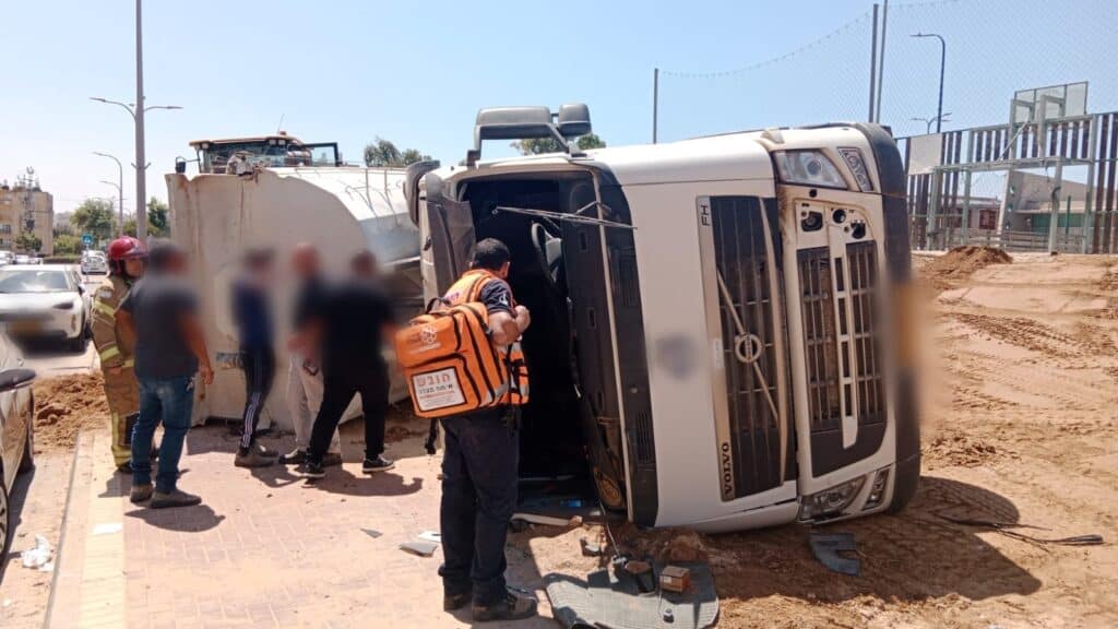 "מדובר במשאית שהתהפכה בתאונה עצמית, בסיוע חובשים נוספים הענקנו טיפול רפואי ראשוני לגבר בן 45 והוא פונה לביה"ח 'ברזילי' כשמצבו מוגדר בינוני."