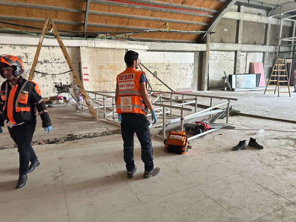 "מדובר בפועל כבן 60 שנפל מגובה מפיגומים בגובה של כ-6 מטרים במהלך עבודתו , הענקנו לו טיפול רפואי ראשוני והוא פונה להמשך קבלת טיפול רפואי בבית החולים במצב קשה".