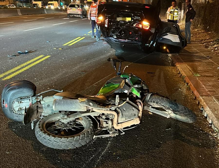 בלילה התקבל דיווח על רוכב אופנוע שנפגע מרכב ברחוב ארגמן באשקלון.