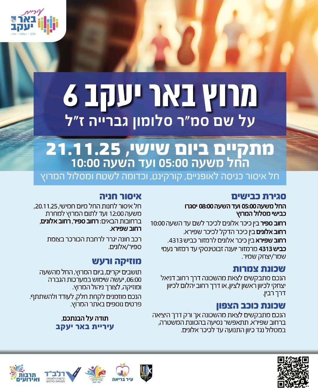 מירוץ באר יעקב יוצא לדרך – כל המידע הנדרש