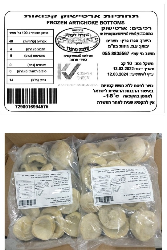 יבואן ע.מ. גינות בע"מ קורא להחזרת המוצר: "תחתיות ארטישוק קפואות"