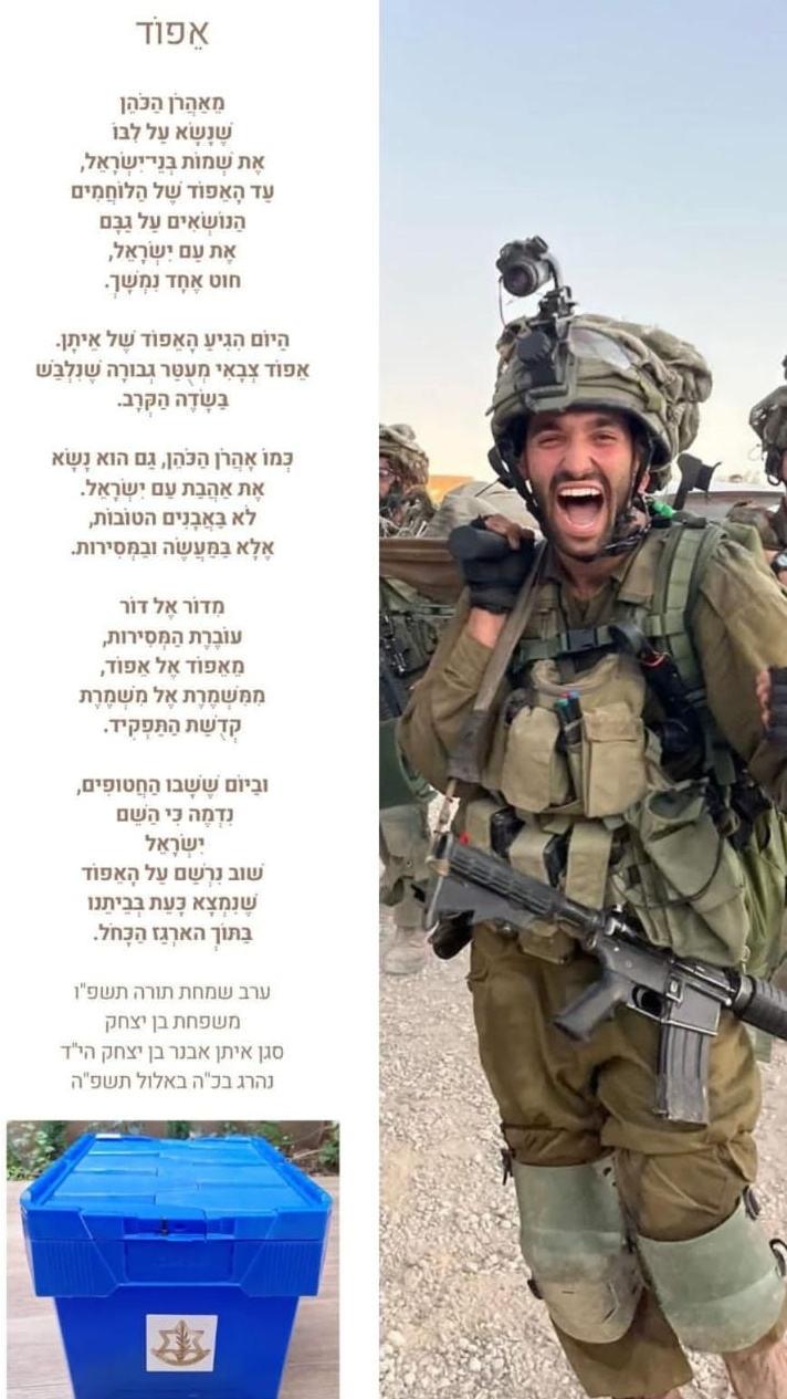 ​רחבת המסדרים בבה"ד 1 ידעה השבוע רגעים מצמררים של זיכרון וגבורה. בטקס סיום קורס הקצינים של מחזור 74, הונצח חסרונו של סגן איתן אבנר בן יצחק ז"ל, תושב גבעת שמואל ולוחם ביחידת אגוז, שנפל בקרב בדרום רצועת עזה ב-18 בספטמבר 2025. איתן, שיצא למשימה כצוער בגדוד "דקל", נפל מפיצוץ מטען ברפיח כחמישה חודשים בלבד לפני הטקס לו כל כך חיכה.