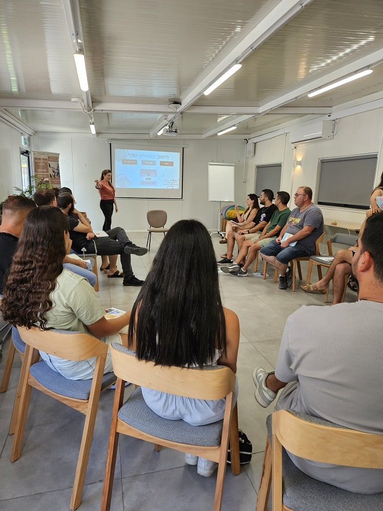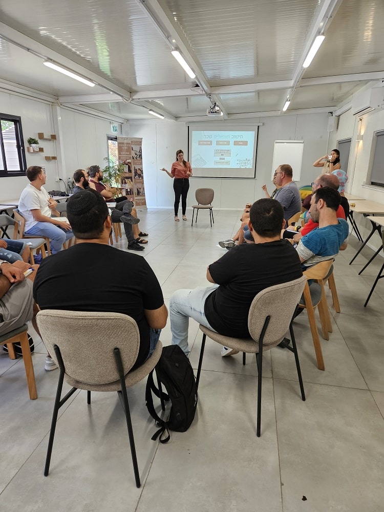 לאחר היכרות קצרה, נכנסו להרצאה בנושא מיצוי זכויות ושאלות בהנחייתה של לינוי סלוק ה"קלכלית", יועצת עסקית וכלכלית, שנתנה סקירה רחבה על זכויות אנשי המילואים ובסופה נתנה מענה מקצועי לשאלות ואף הדריכה אותם מה עליהם לעשות. בתום ההרצאה, נהנו המשתתפים משתי סדנאות, סדנת מיינדפולנס וסדנת כתיבה בהנחייתה של עמליה סינגר, מנחת סדנאות וריטריטים. במסגרת הסדנאות, המשתתפים הביעו את הרגשות שלהם ועיבדו אותם לכדי כתיבה, השתחררו מעט מהמתחים והתחילו את חופשת סוף השבוע בצורה רגועה יותר.