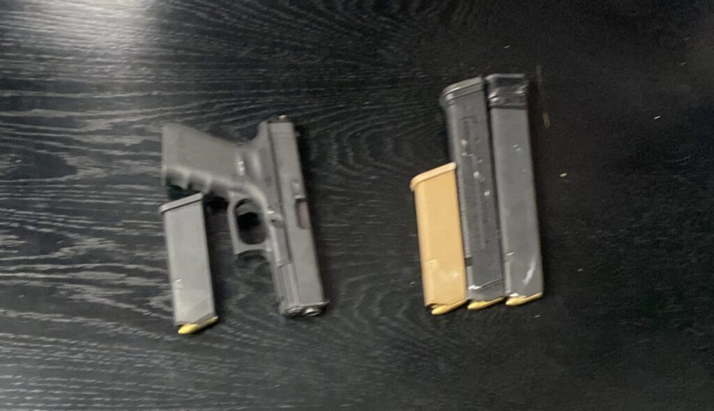 בתוך כך חשפו השוטרים אקדח מסוג גלוק ו 4 מחסניות טעונות שהוסתרו בתוך אחד המשקופים. בהמשך החיפוש תפס אחד השוטרים שקית ובה תחמושת, כדורי 9 מ"מ.