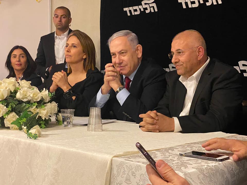 ביבי הגיע לגדרה וזכה לתשואות ממאות התושבים; ראש המועצה, יואל גמליאל לצידו ושרי הממשלה