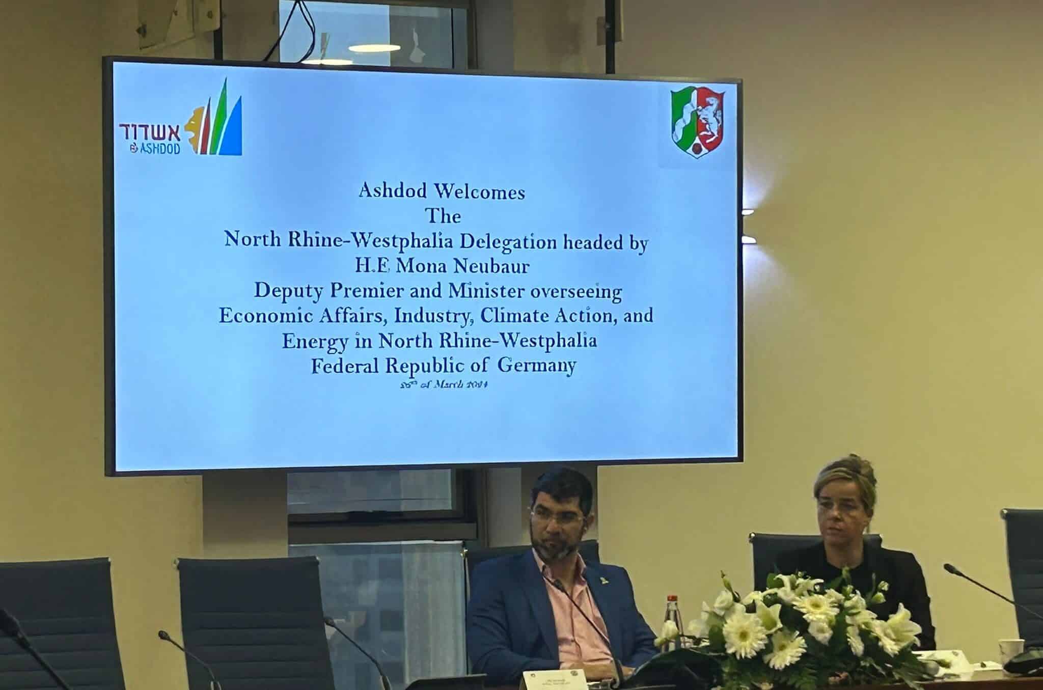 עו"ד אלי נכט, סגן ראש עיריית אשדוד, קיבל בברכה את גב' מונה נויבאור (MONA NEUBER), סגנית ראש הממשלה והשר לענייני כלכלה, תעשייה, פעולת אקלים ואנרגיה של מדינת נורדריין-וסטפאליה בגרמניה, יחד עם פמלייתה.