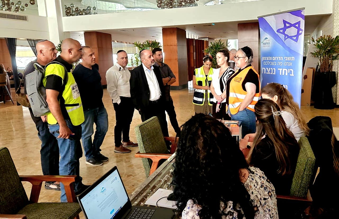 השר מרגי הגיע יחד עם מנהל מחוז הדרום במשרד הרווחה ישראל בודיק, כדי לעקוב מקרוב אחר השירותים החברתיים הקהילתיים הניתנים לתושבים שפונו מבתיהם למלונות.