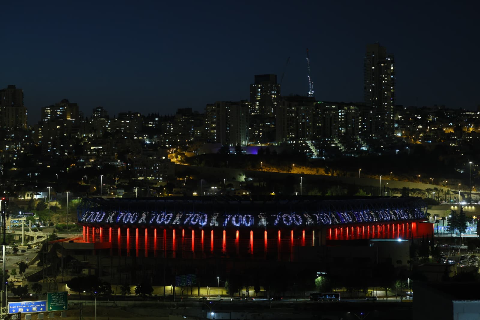 עיריית ירושלים האירה הלילה את גשר המיתרים ואת אצטדיון טדי בצבע צהוב, במספר 700 ובסמל החטופים – לציון 700 ימים לפרוץ מלחמת "חרבות ברזל".