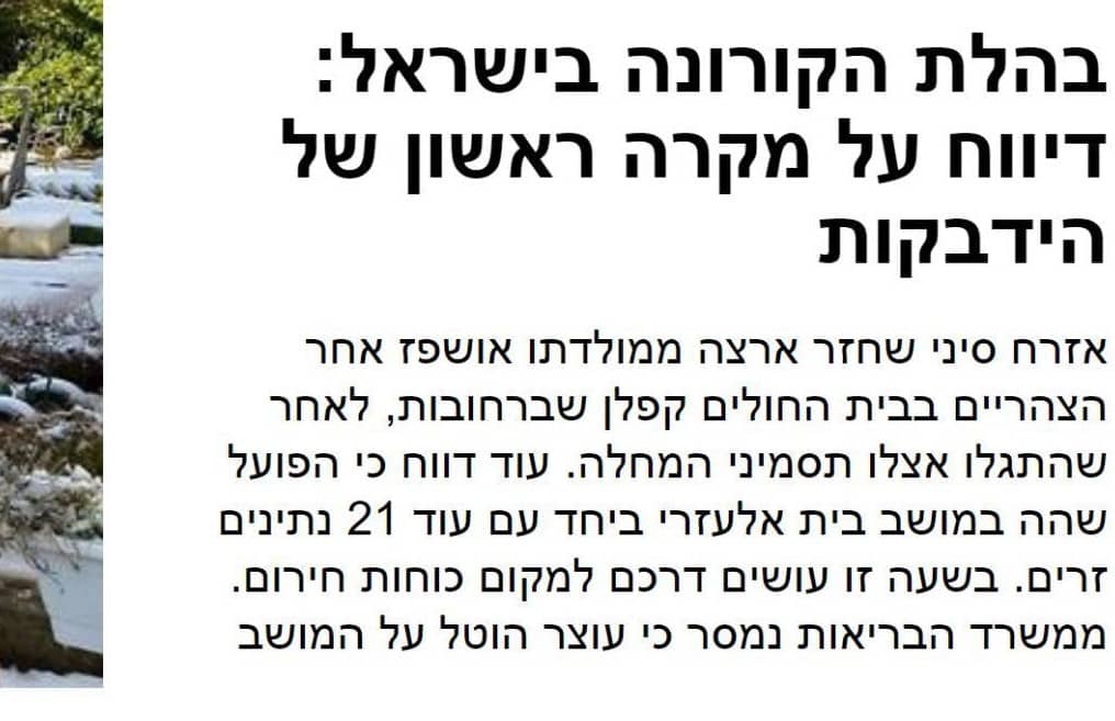 אופיר לוי, דובר בית החולים מסר בתגובה: "הסיפור אודות נגיף הקורונה ממש לא נכון. מדובר בפייק ניוז, הדבר גם לא פורסם בכלל ב-ynet כפי שהוצג. מישהו עשה קופי פייסט לדף שלהם והעביר בוואטאספ. הציבור יכול להיות רגוע ולהגיע בבטחה אל בית החולים".
