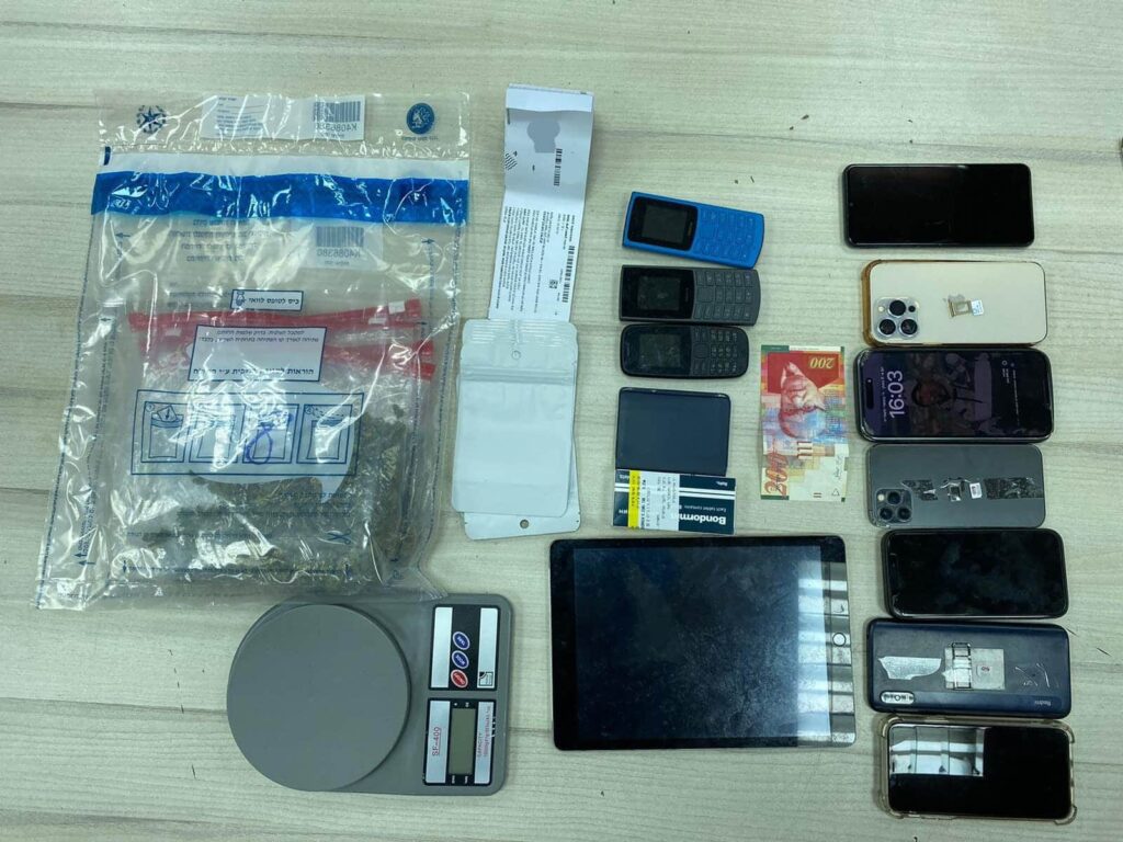 בדירה נתפס חומר חשוד כסם מסוג מריחואנה מחולק לשקיות, צ'קים על שם הלא שייך לחשודים ומכשירי טלפון רבים.
