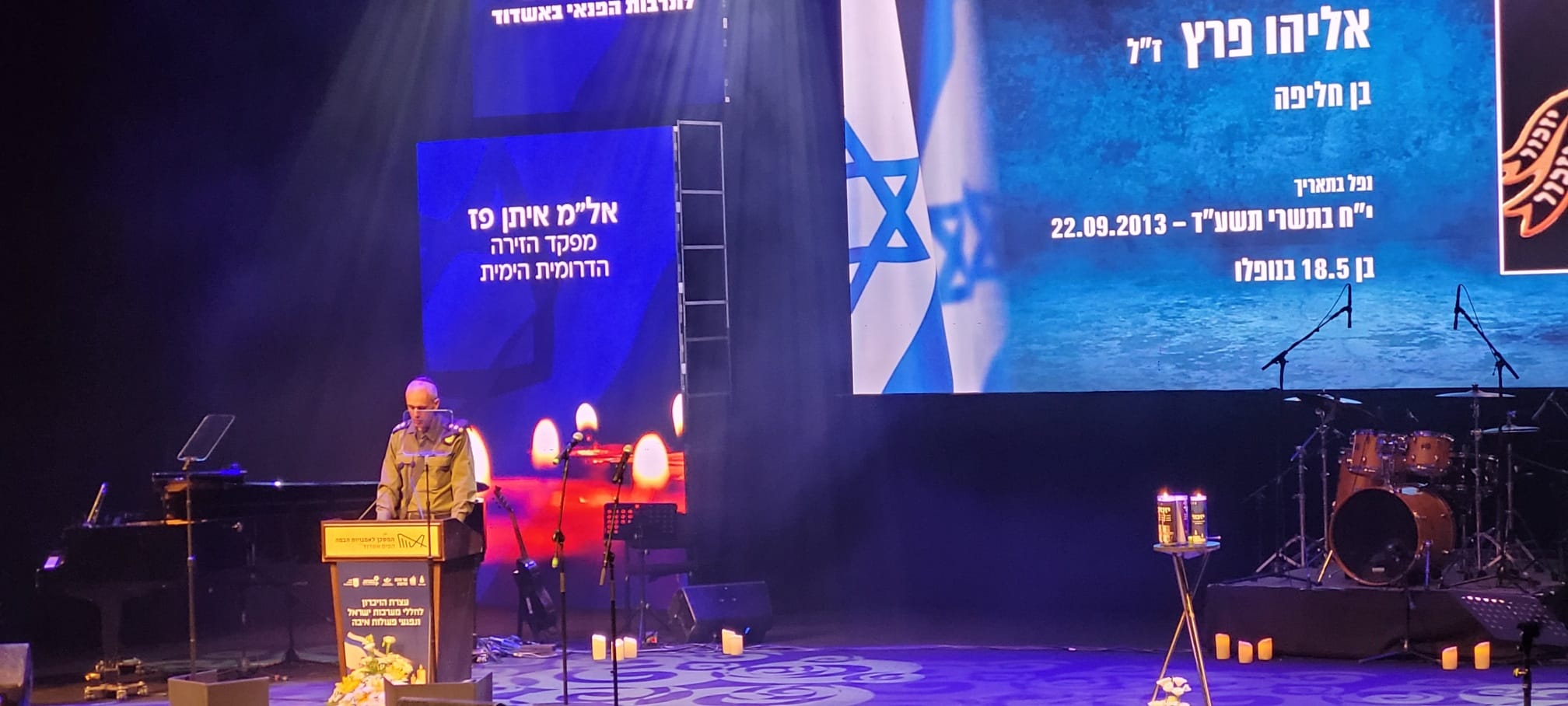 במעמד שר האנרגיה אלי כהן, ראש העיר ד"ר יחיאל לסרי, מפקד הזירה הדרומית הימית אל"מ איתן פז, יו"ר סניף יד לבנים שלומי בן עזרי, נציגת משפחות הנפגעים בפעולות איבה הגב' זיוה בן אטב, רבנים, נבחרי ציבור וחברי מועצת העיר, יקירי העיר, משפחות שכולות וציבור תושבים, התקיים במשכן לאומנויות הבמה טקס הזיכרון המרכזי לחללי מערכות ישראל. הטקס כלל קטעי קריאה, הדלקת נר זיכרון, פרק תהילים, קדיש, נשיאת דברים וקטעי שירה, והוא הונגש סימולטנית לציבור האוכלוסיות המיוחדות שנכח באולם.