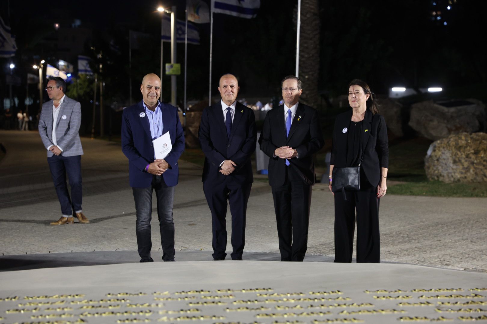 נשיא המדינה יצחק הרצוג: ״אנחנו עומדים כאן היום, מציינים מעט יותר משנה מאותו יום ארור; מעט יותר משנה – למערכה הקשה והמדממת; מעט יותר משנה של צדקת הדרך, לאמונה ולתקווה. את כל אלה אנחנו מציינים כאן – בהתייחדות וזיכרון, באתר ההנצחה החשוב, הכואב, היפיפייה המרגש הזה המוקדש לאהוביכם – אהובינו – חללי העיר אשדוד שנפלו ונרצחו במערכה.