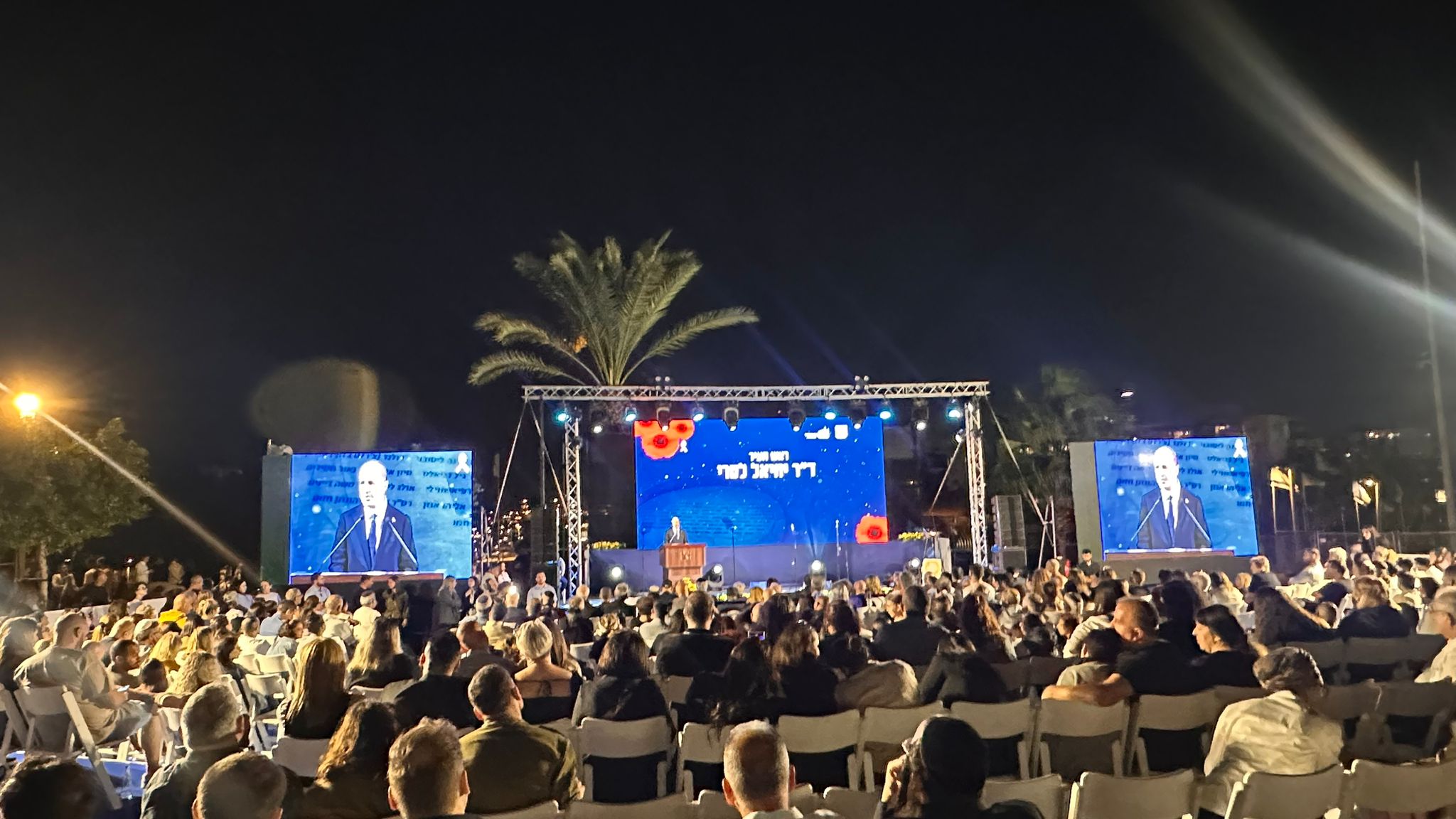 במרכזו של הפארק היפה, אל מול נופי העיר, במעמד משפחות הנופלים, יקירי העיר ונציגי ציבור, לקול שיר הפתיחה של דני רובס, אח שקול שביצע ברגש רב את השיר "מחר הוא יחזור", ולאחר דברי הנחיה מפיו של דני קושמרו, התכבד נשיא המדינה מר יצחק הרצוג, להיות ראשון הדוברים.
