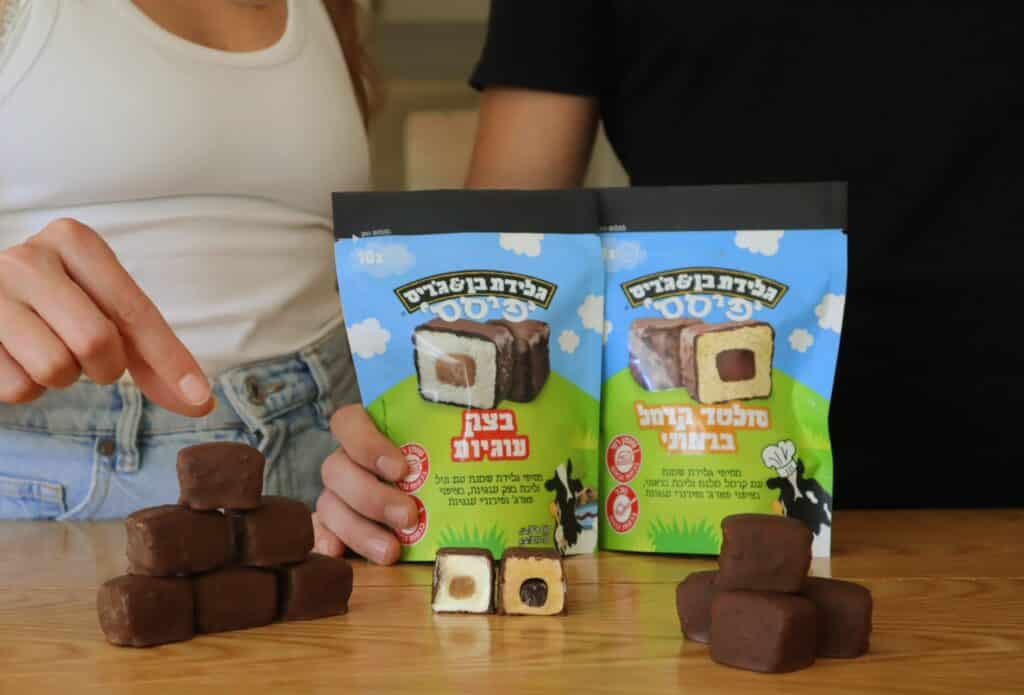 'פיסס' בצק עוגיות – חטיפי גלידת שמנת עם וניל וליבת בצק עוגיות, בציפוי פאדג' ופירורי עוגיות ו'פיסס' סולטד קרמל בראוני – חטיפי גלידת שמנת עם קרמל מלוח וליבת בראוני בציפוי פאדג' ופירורי עוגיות.