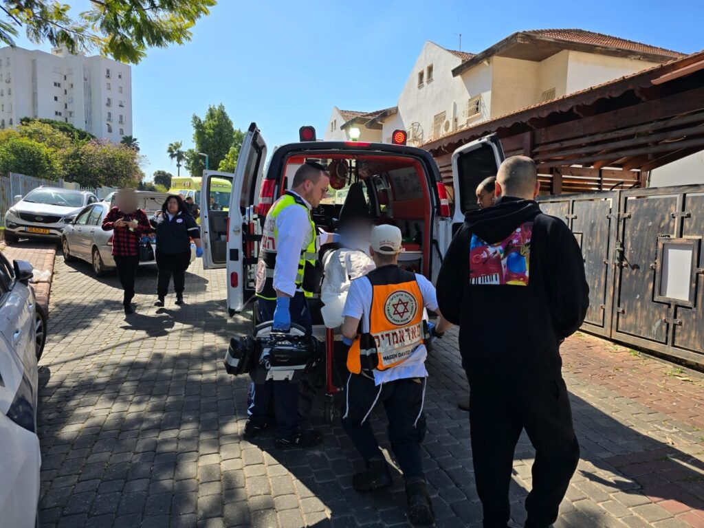 חובשים ופראמדיקים של מד"א מעניקים טיפול רפואי ומפנים לבי"ח שמיר-אסף הרופא, גבר כבן 70 במצב בינוני, עם פציעה חודרת.