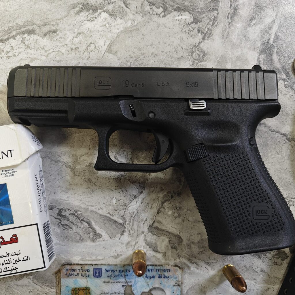 בסיוע ניידת נוספת מתחנת בנימין שנערכה לעצירת כלי רכב המנסים לחמוק, כפי שהתרחש בפועל במקרה זה, הרכב החשוד נעצר ונבדק לעומקו. ברכב נהג חשוד בן 33 תושב מ.פ שועפט שבצפון ירושלים ובחיפוש שערכו שוטרי הסיור ברכב, אותרו מוסלקים בתא הגלגל החלופי- אקדח מסוג 'גלוק', מסיכת סקי שחורה וקופסת סיגריות שבתוכה תחמושת כדורי 9 מ"מ.
