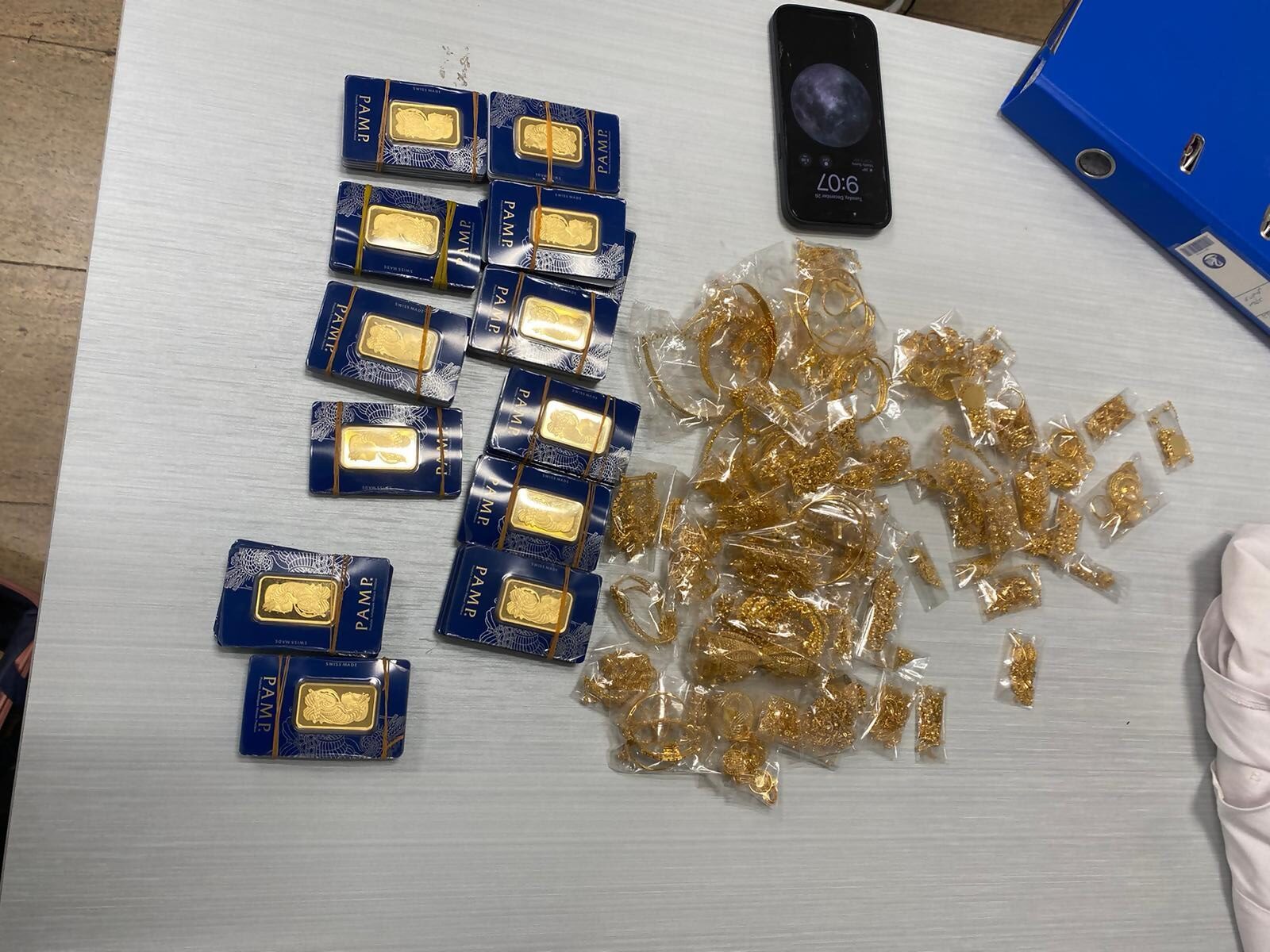 עליאא וסמאח עאבדין, בני זוג ממזרח ירושלים, נעצרו בנתב"ג בחשד שניסו להבריח אונקיות זהב במשקל 2.630 קילוגרם ותכשיטי זהב במשקל 921 גרם מדובאי לישראל.