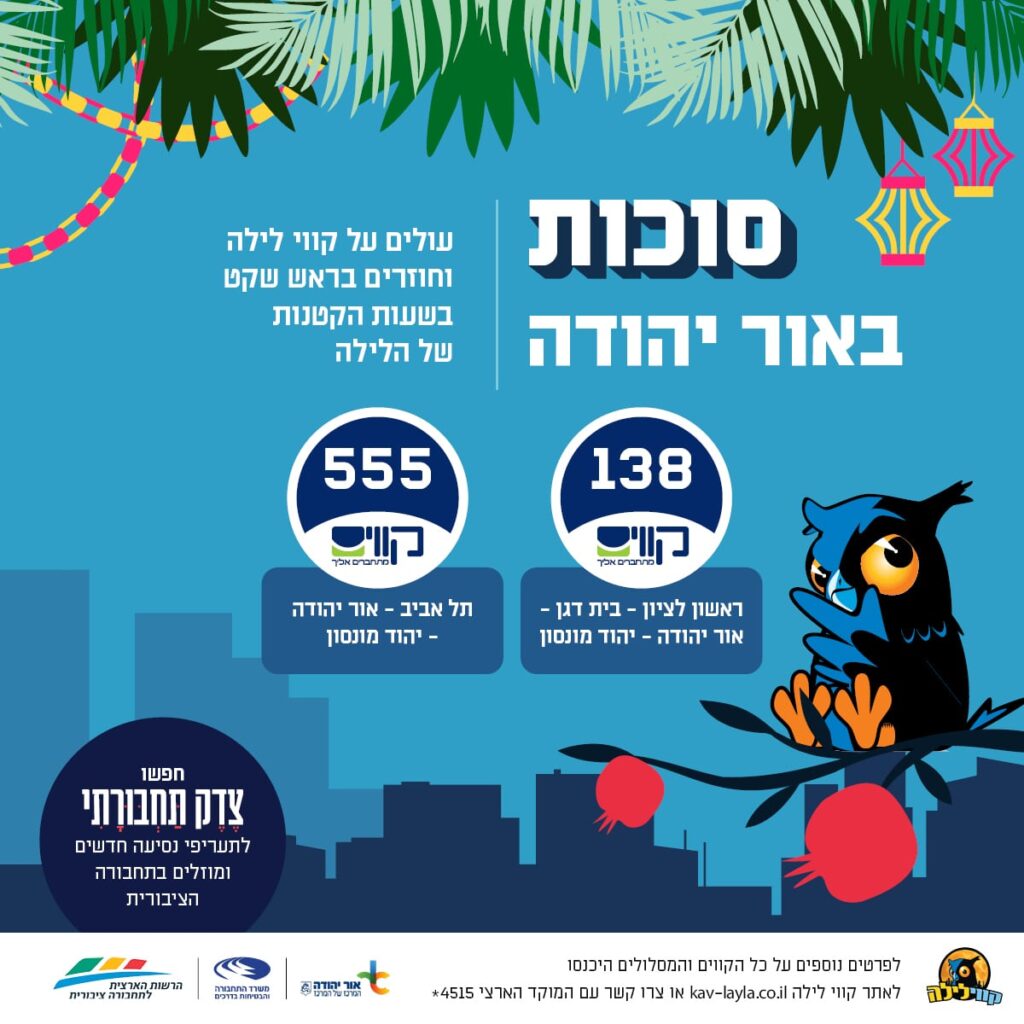 סוכות באור יהודה: עולים על קווי הלילה וחוזרים בראש שקט בשעות הקטנות של הלילה