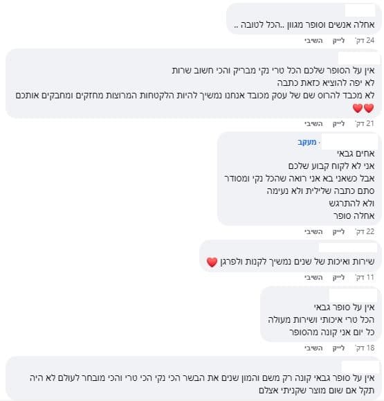מאידך, תגובות אוהדות רבות לסופר גבאי, ברשת החברתית. בין היתר נכתב: "עבדתי בסופרמרקט הזה יותר משנה, ולמען האמת, לא נתקלתי בשום דבר לא טרי או לא בריא במהלך עבודתי. פקיד מחלקה הדגיש על כל העובדים לעקוב אחר הסחורה שהתקבלה, לבדוק את בריאותם. ושימו לב לניקיון המדור בכל עת למען האמת, סיימתי לעבוד במקום הזה ולא ראיתי יחס וכבוד ללקוחות כמו משפחת גבאי היקרה".