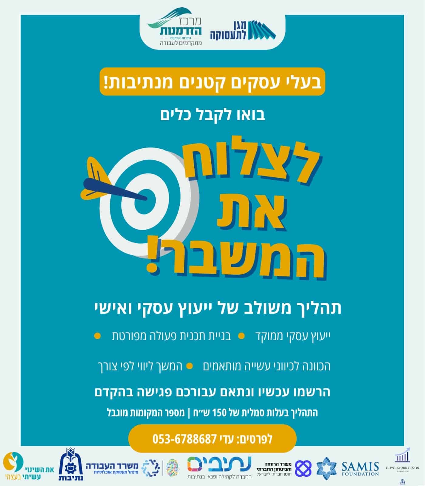 עיריית נתיבות יזמה לעבור בעלי עסקים קטנים מהישוב תהליך ייעוץ מקיף- עסקי ואישי, עם מיטב בעלי המקצוע בתחום, בעלות מסובסדת של 150 ש"ח בלבד.