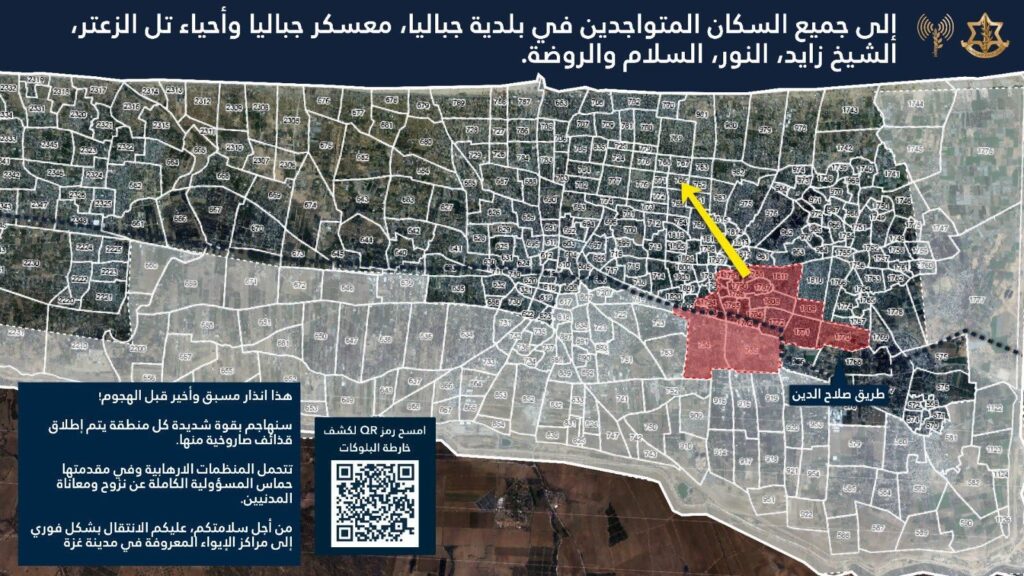 לכל תושבי רצועת עזה הנמצאים בעיריית ג'באליה, במחנה ג'באליה, ובשכונות תל אל-זעתר, שייח' זאיד, אל-נור, אל-סלאם ואל-רוודה