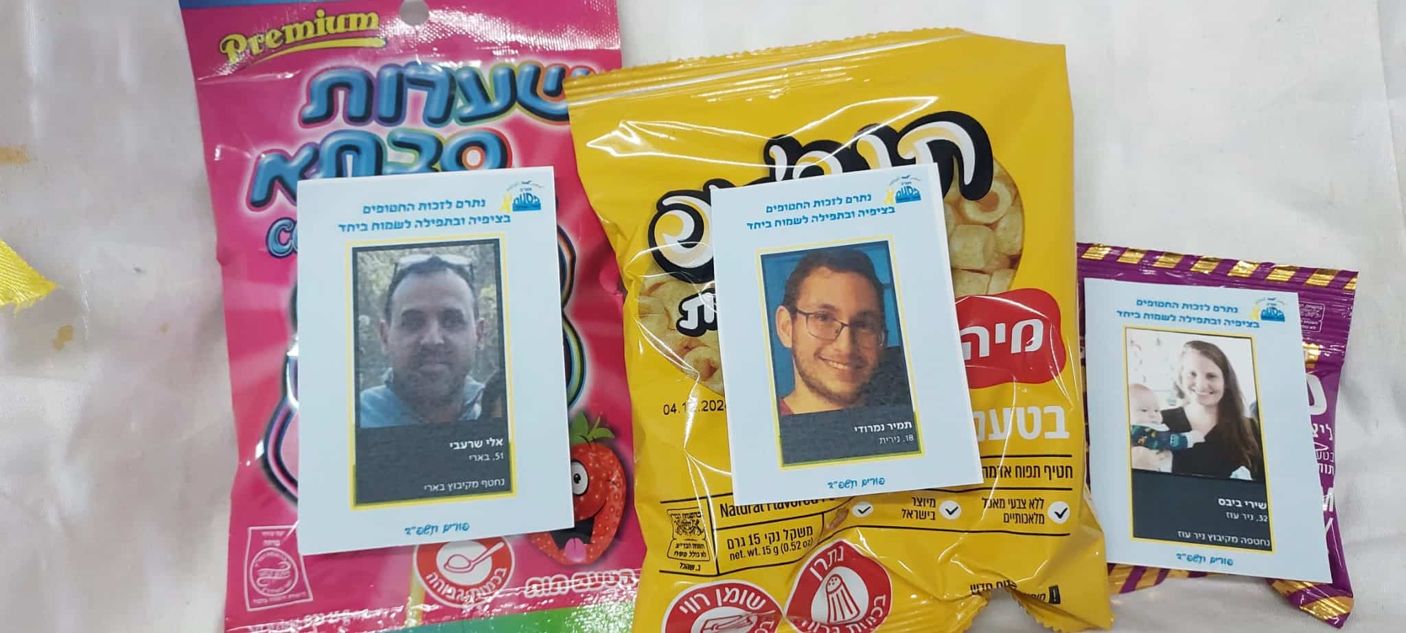 תלמידים משכבה ח' אפו בחדר בישול בחטיבה אוזני המן, לכל מארז צורפה כרטיסיה עם פרטי חטוף/ה. המארזים חולקו לפצועים וללוחמים. תודה ל -R2M על תרומת המצרכים.