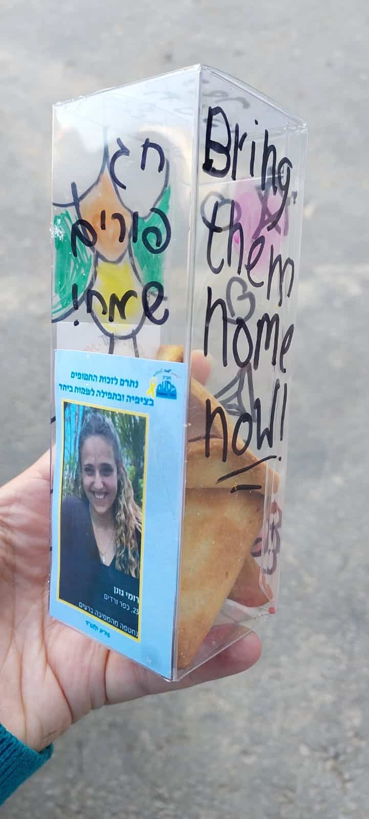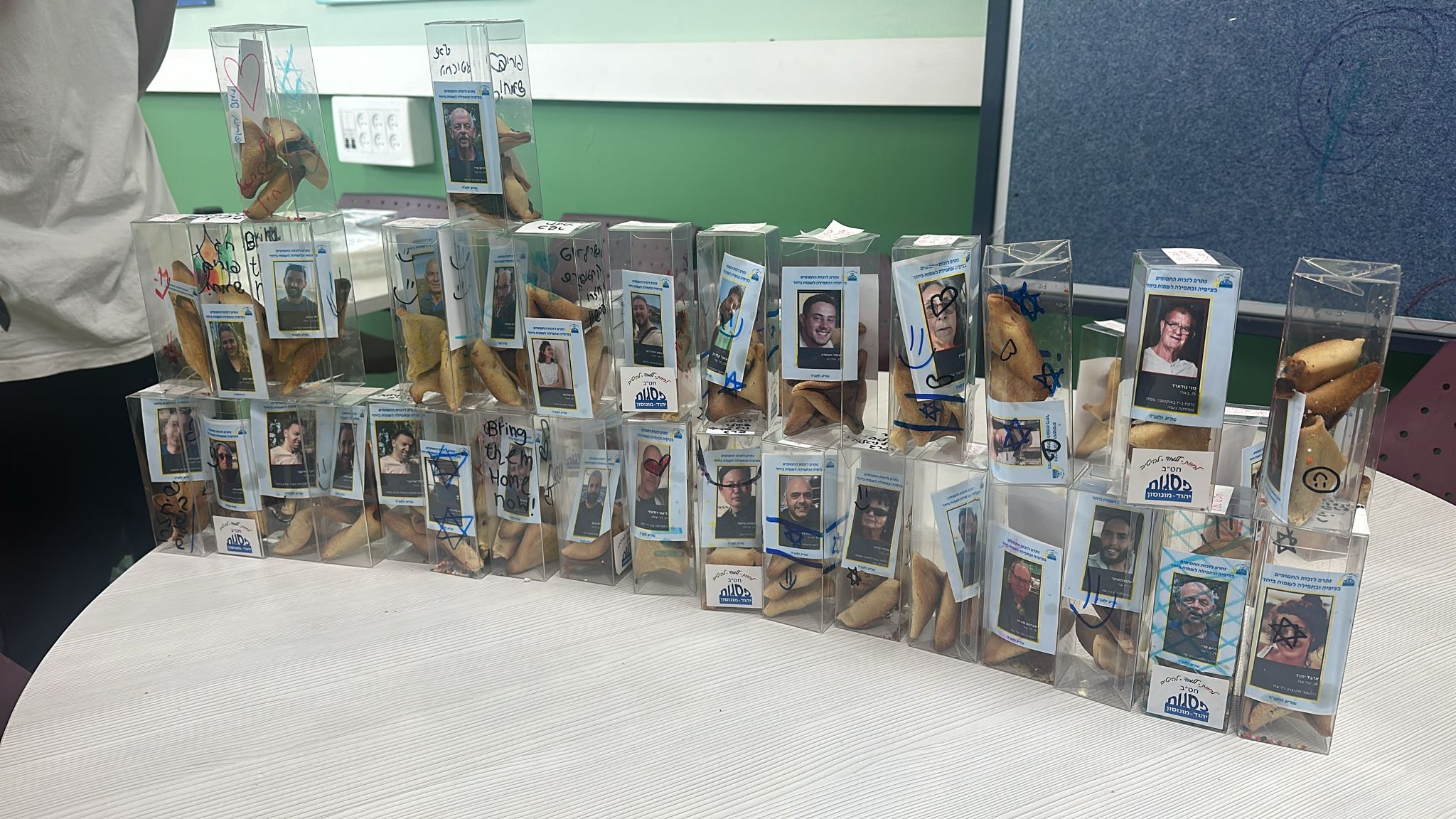 תלמידים נפגשו בקבוצות אחר הצהריים, ואפו מתכון אהוב על חטופ/ה מתוך האתר. מארזי העוגיות עם הגלויות, חולקו לצוותים רפואיים במחלקות שיקום.