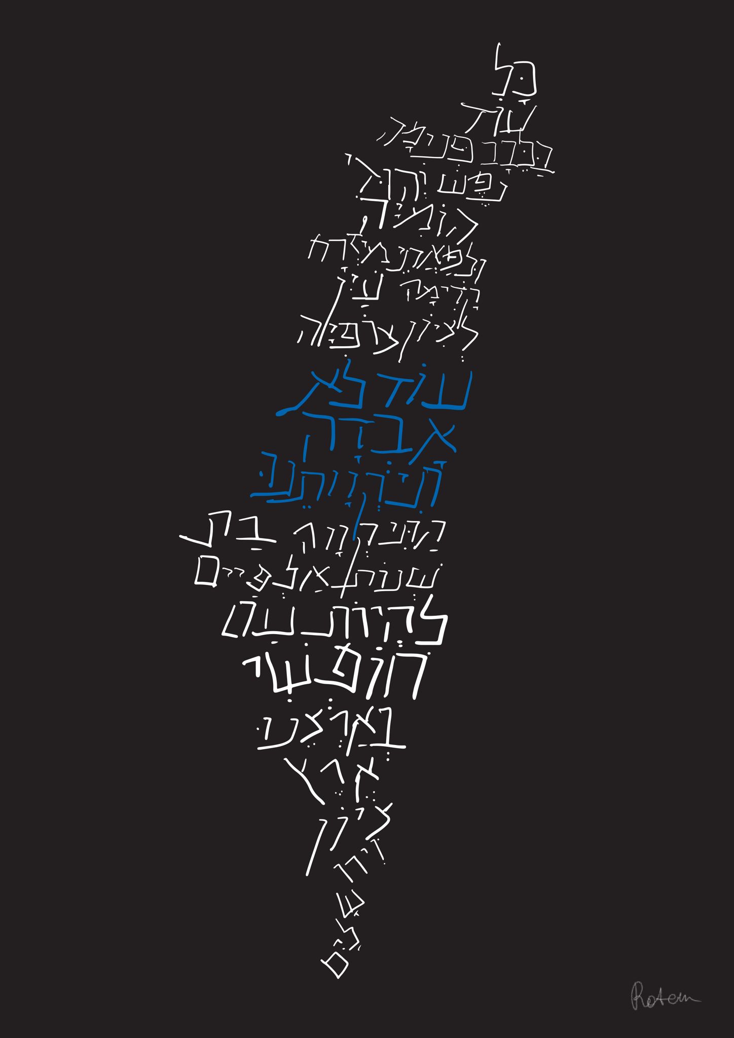 אחת מהכרזות בתערוכה מציגה את מפת ארץ ישראל המעוצבת על ידי מילות התקווה שכתובות בכתב יד של ילדים. "היה לי חשוב להציג את המצב דרך העיניים של הילדים, גם הילדים שחיים פה במדינה וגם הילדים החטופים", הסבירה מעצבת הכרזה רותם בושושה, סטודנטית שנה ב' במחלקה לתקשורת חזותית ב-SCE, "הכרזה מעבירה מסר אופטימי, של המשכיות ותקווה עבור כל הילדים ועבור כולנו כעם. כולנו חווינו כאב באותה שבת, כל אחד מכיר מישהו שהיה שם וזו הייתה חוויה קשה אבל חשוב לי להעביר את המסר שאנחנו ננצח, זו הארץ שלנו ותמיד יש לנו תקווה".