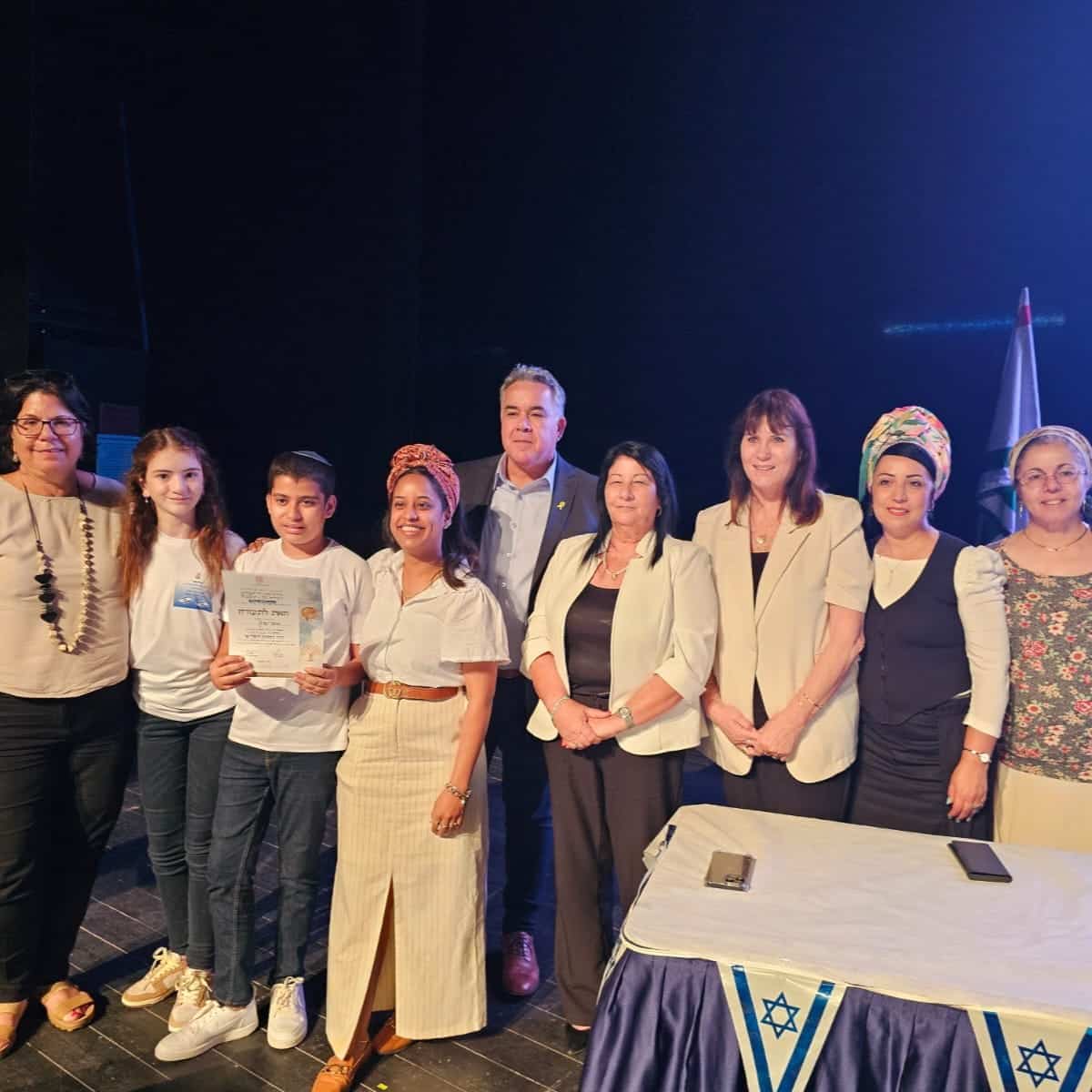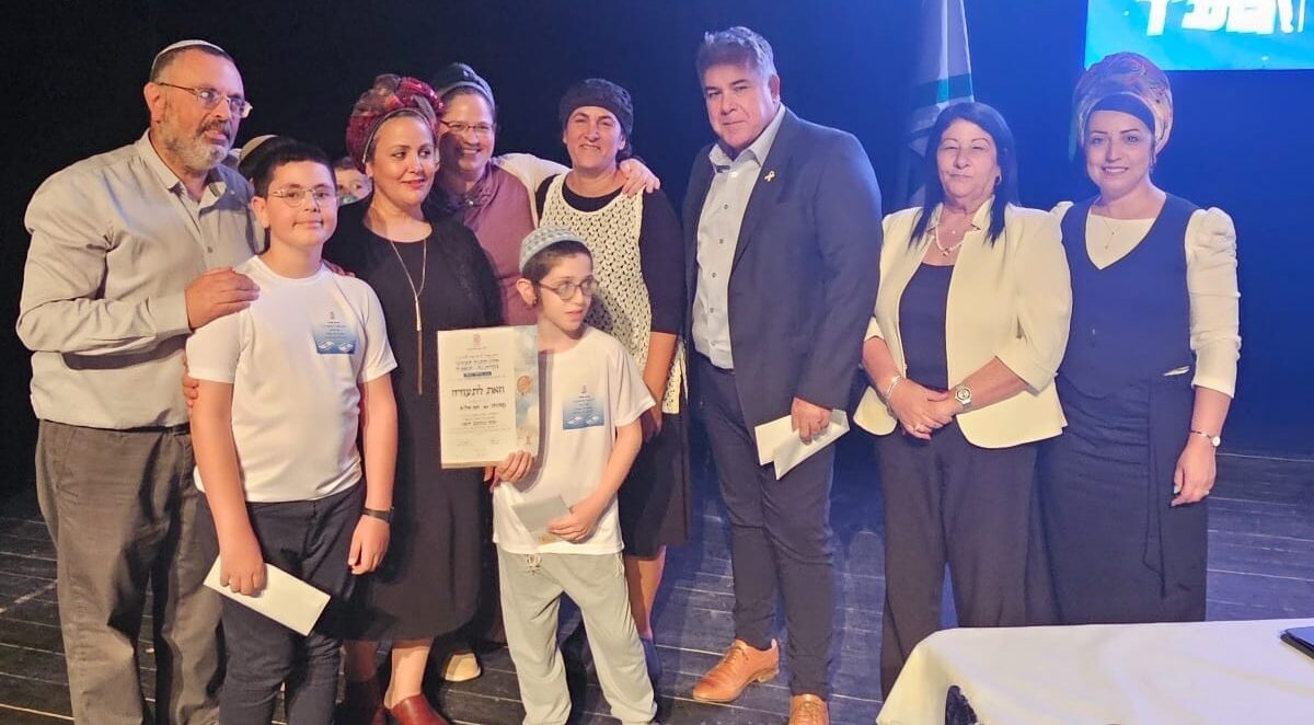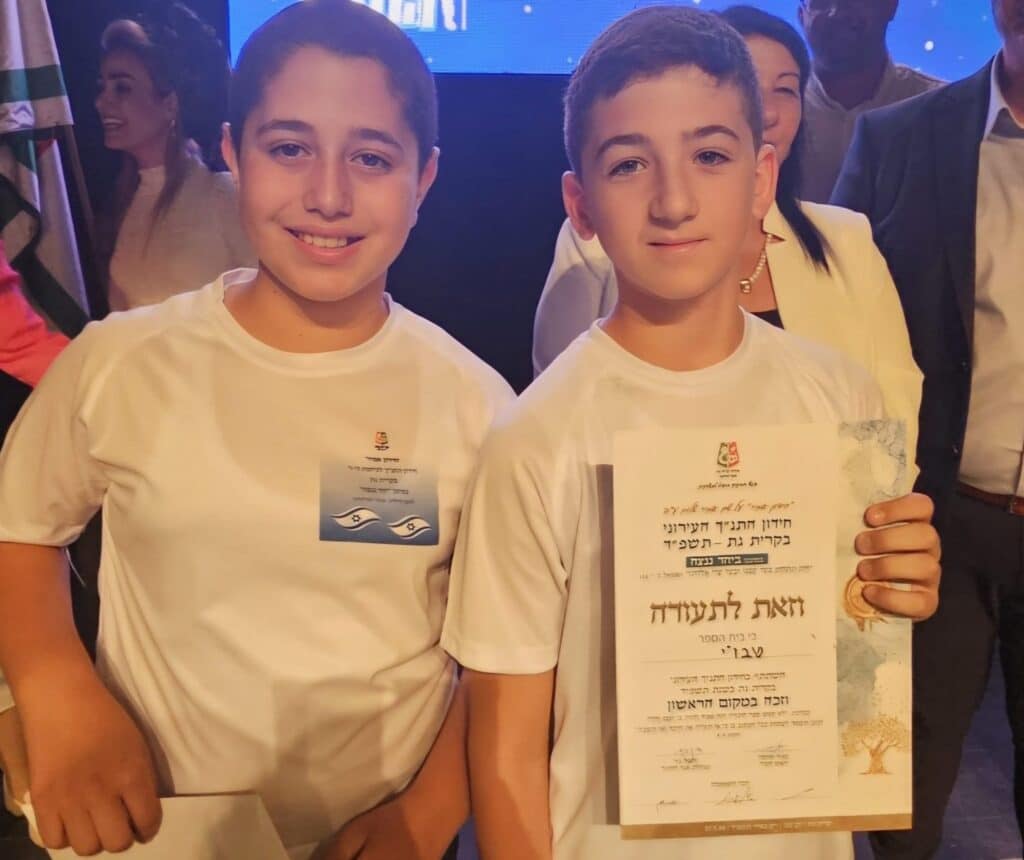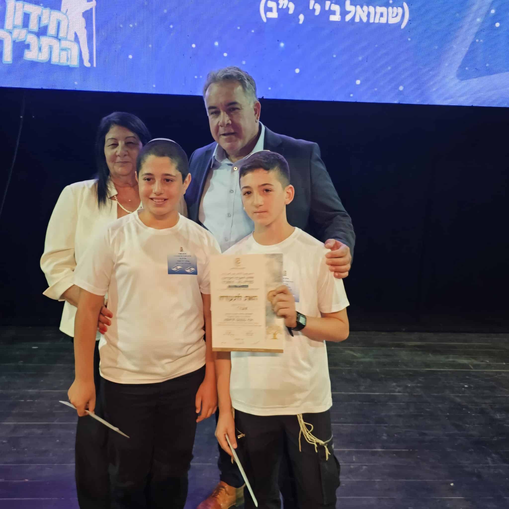 ברכות גם למקום השני, נציגי ביה"ס משואה ע"ש יוסף שלום – דרור צור ושילה ישראל מימרן.