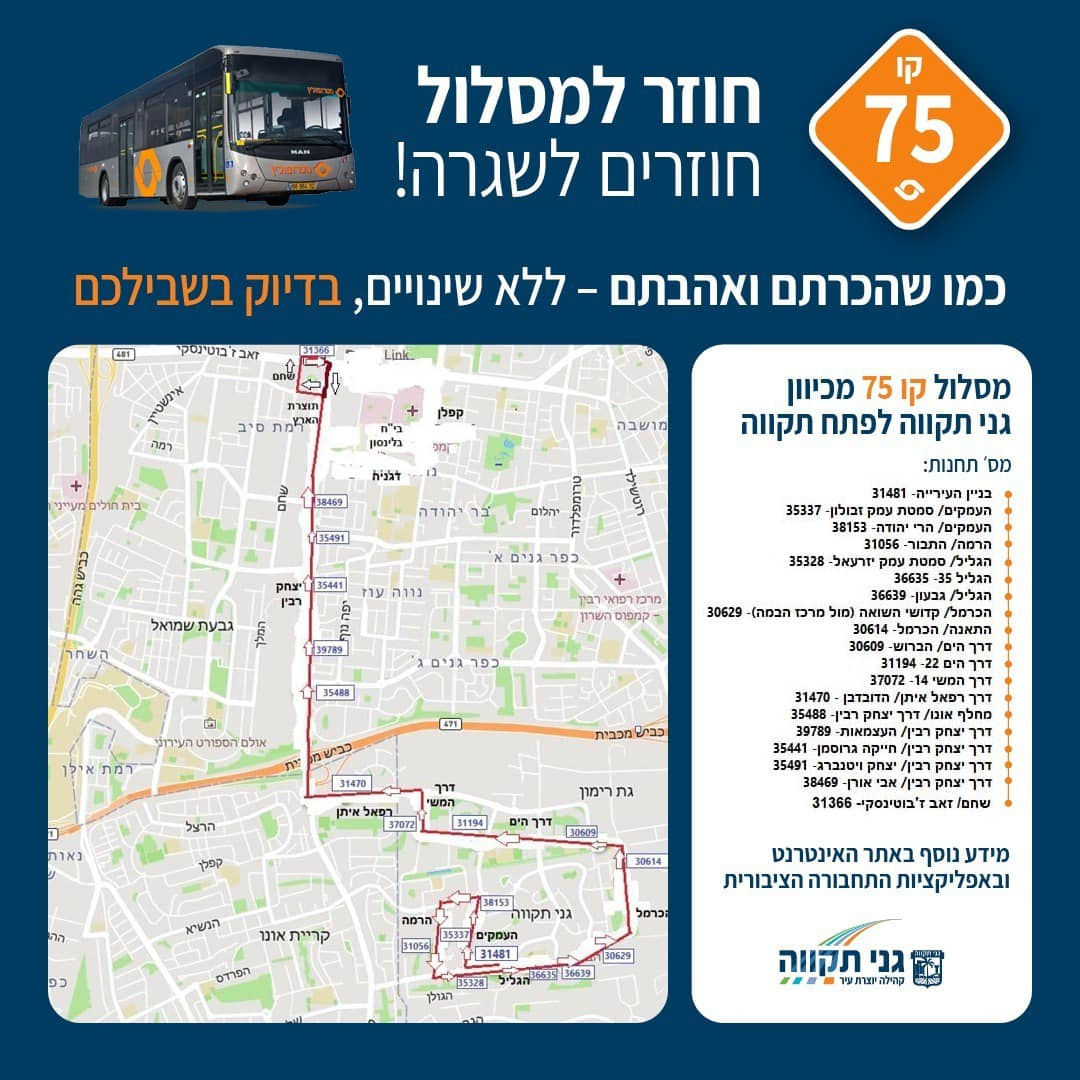 בעקבות סקר: קו 75 של מטרופולין בגני תקווה חוזר למסלולו המקורי החל מה-13.12.24!