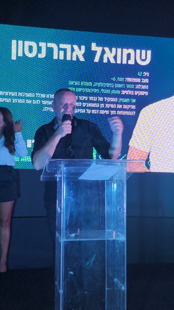 שמואל אהרונסון-מאמן מנטלי, פסיכותרפיסט ויזם. "התפקיד של נבחר ציבור הוא להנהיג ולוודא שכלל המערכות העירוניות מפיקות את המיטב מן המשאבים למען התושבים ולאפשר להם את המרחב המיטבי להתפתחות תוך שימת דגש על חינוך, רווחה וקהילה".