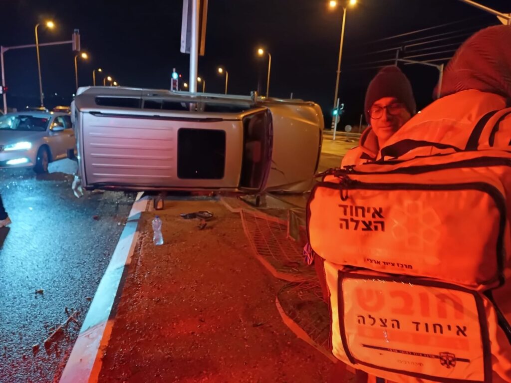 פצוע בינוני ופצוע קל כתוצאה מהתהפכות רכבם בכביש 35