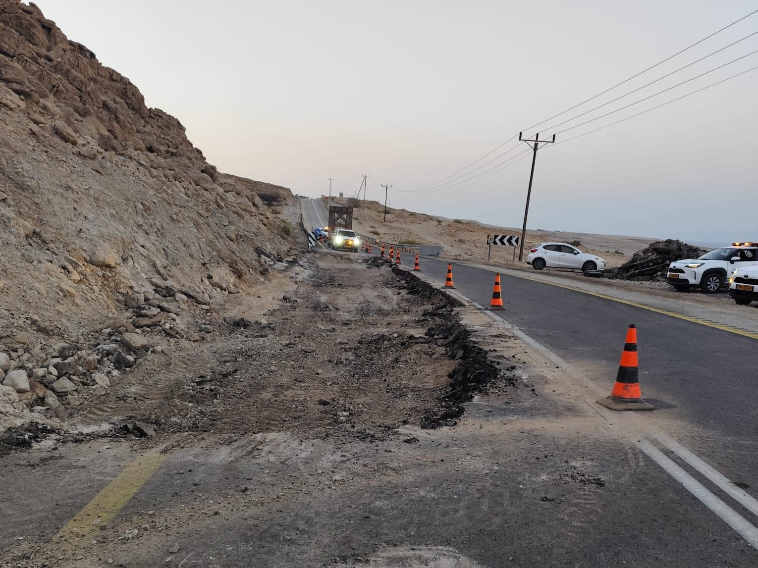 עדכון מהמשטרה: כביש 90, שנחסם לתנועה בין מצפה שלם לעין גדי בעקבות היווצרות בולען, נפתח כעת באופן חלקי. לאחר עבודות בטיחות, נפתח נתיב אחד בלבד לתנועה מבוקרת ולסירוגין.