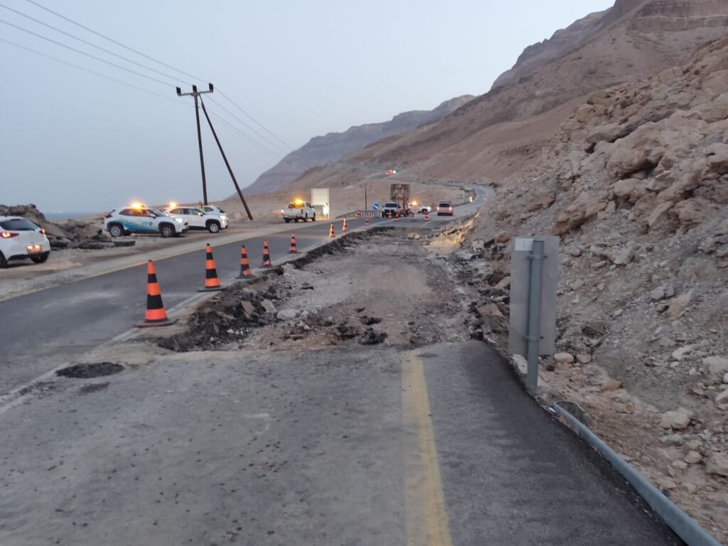 עדכון מהמשטרה: כביש 90, שנחסם לתנועה בין מצפה שלם לעין גדי בעקבות היווצרות בולען, נפתח כעת באופן חלקי. לאחר עבודות בטיחות, נפתח נתיב אחד בלבד לתנועה מבוקרת ולסירוגין.