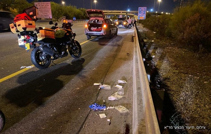 יניב אביוב חובש איחוד הצלה מסר: "בסיוע חובשים נוספים שהיו בסמיכות למקום הענקתי סיוע ראשוני להולכת הרגל שסובלת מפגיעה רב מערכתית כתוצאה מפגיעת רכב פרטי כשחצתה את כביש 1. לאחר הסיוע הראשוני בזירה היא פונתה למרכז הרפואי שיבא בתל השומר".