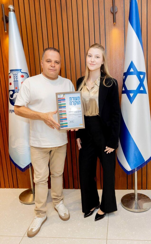 השבוע העניק ראש עיריית אשקלון, תומר גלאם, תעודות הוקרה לשני תושבים מצטיינים, שייצגו את העיר בהישגים יוצאי דופן בזירה התרבותית והבינלאומית: מיכאל ליינוונד, שזכה בפרס מפעל חיים על תרומתו רבת השנים לשימור ולקידום תרבות היידיש במוזיקה, ואנסטסיה בוך, שקטפה את המקום הראשון בתחרות מוזיקה יוקרתית בניו יורק.