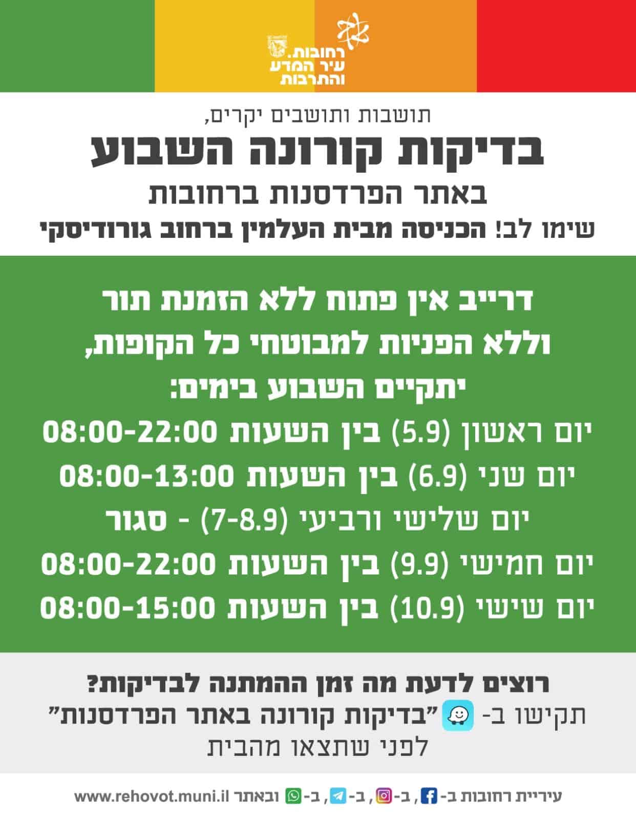 רוצים לדעת מה זמן ההמתנה לבדיקות קורונה באתר הפרדסנות? מעכשיו זה אפשרי! לפני שיוצאים להיבדק באתר הפרדסנות מקלידים ב-WAZE: ״בדיקות קורונה באתר הפרדסנות״, ובודקים מה הם זמני ההמתנה וכך תוכלו להחליט אם כדאי לנסוע לאתר הבדיקות, או להמתין לזימון תור לבדיקה בקופת החולים.