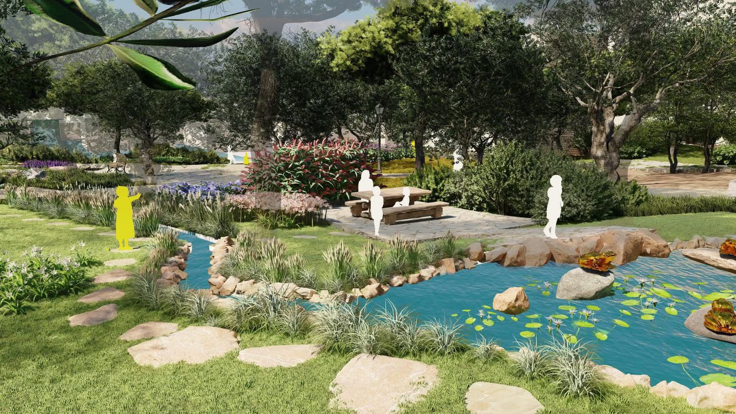 בצידו של רחוב הזיתים יוקם גן סיפור ראשון מסוגו: גן אינטראקטיבי המוקדש ליצירותיה האהובות של הסופרת רינת הופר, החתומה על שורה של ספרי ילדים אהובים ובהם “חנן הגנן”, “איילת מטיילת” ו״מפלצת סגולה” ועוד. הגן יכלול מתקנים, פסלים וסיפורים שיתעוררו לחיים בין השבילים. במרכזו יעבור נחל אקולוגי זורם, פינות ישיבה מוצלות, שבילים נגישים ושטחים ירוקים פתוחים לכל המשפחה. בצידו של רחוב מנחם בגין ימשיך הפארק לשמש כגן זיכרון לצוללת דקר.