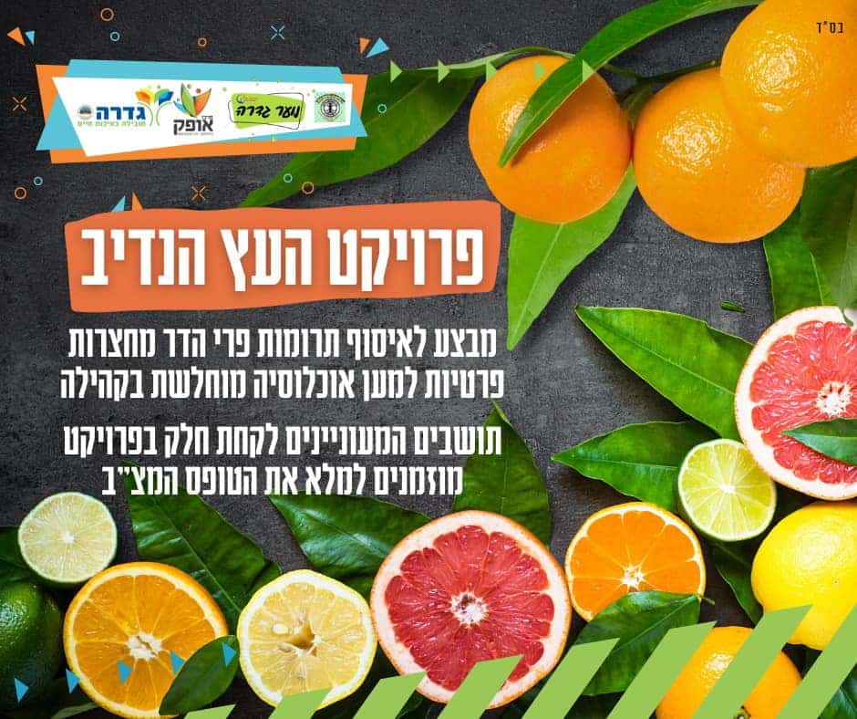 פרויקט "העץ הנדיב" יוצא לדרך בגדרה עם איסוף תרומות פרי הדר מהחצרות הפרטיות למען אוכלוסייה מוחלשת בקהילה