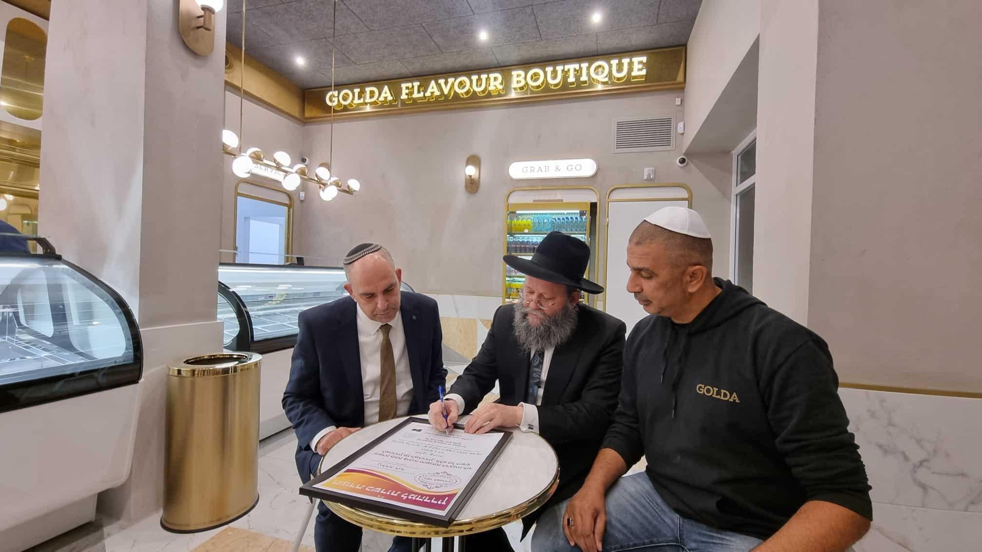 גולדה בזכיינות של מלכי מונטיפיורי פתחה רשמית בלוד; יאיר רביבו והמשפחה הגיעו לפרגן