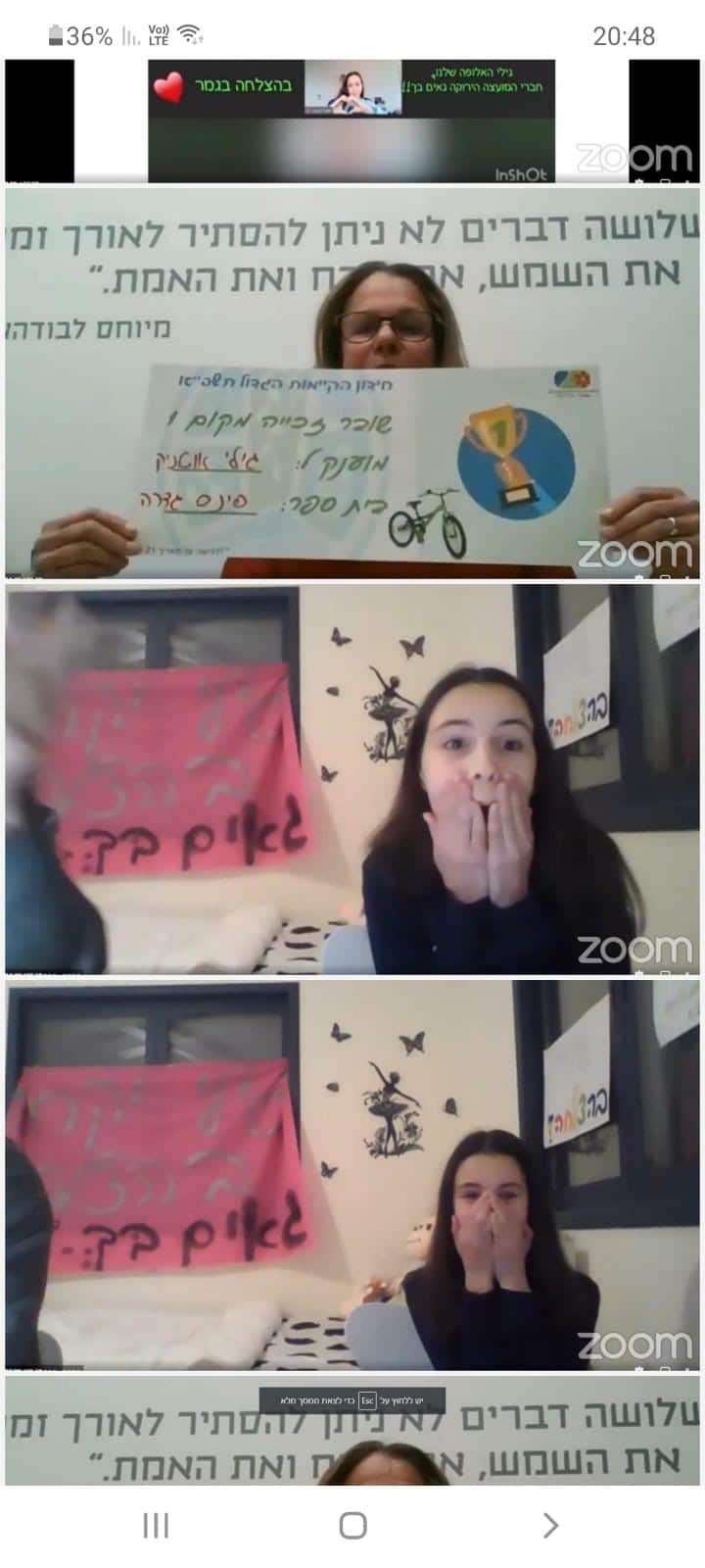 גילי אוטניק, תלמידת כיתה ו' מגדרה, ניצחה בחידון הקיימות האזורי הגדול; במקום השני: יהונתן שמואל