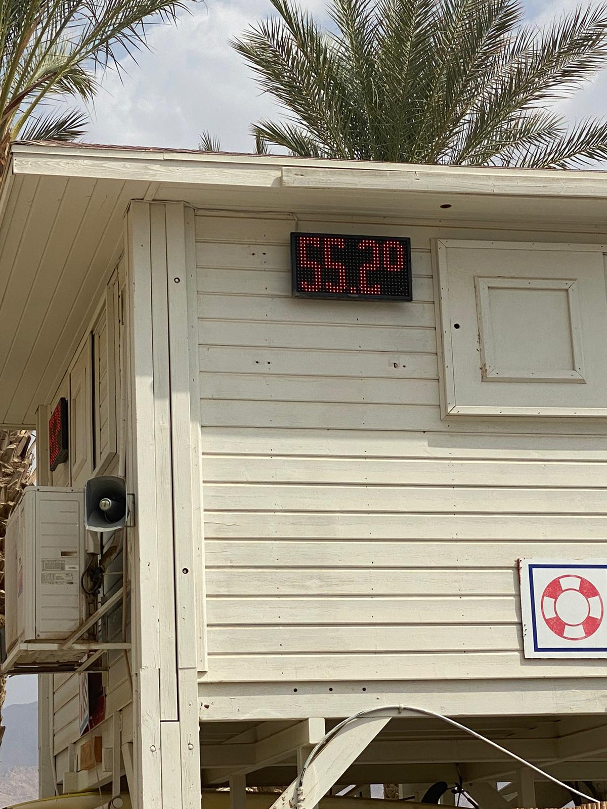 שיא השיאים – עכשיו באילת: למעלה מ-55 מעלות צלזיוס הוצגו באחת מתחנות החוף באילת במהלך השעות האחרונות. חלק מהושבים מדווחים על 50 מעלות "בלבד" ומספרים כי החום הגיע למצב שלא ניתן שהות באזור שאינו ממוזג.