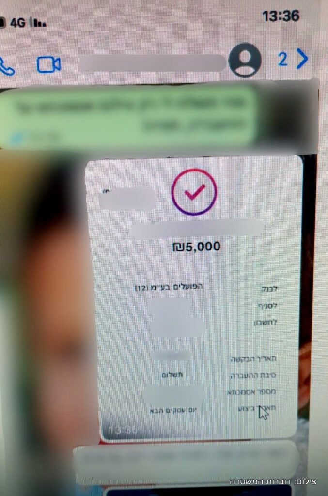 עוד עלה בחקירה, את צילום אסמכתה לכאורה המעידה על העברת הכסף למוכר, דאג החשוד להכין באמצעות תוכנה המותקנת במכשיר הפלאפון שברשותו וכך היתל בלמעלה מ-120 קורבנותיו ברחבי הארץ בסכום כספי מצטבר של מאות אלפי ש"ח.