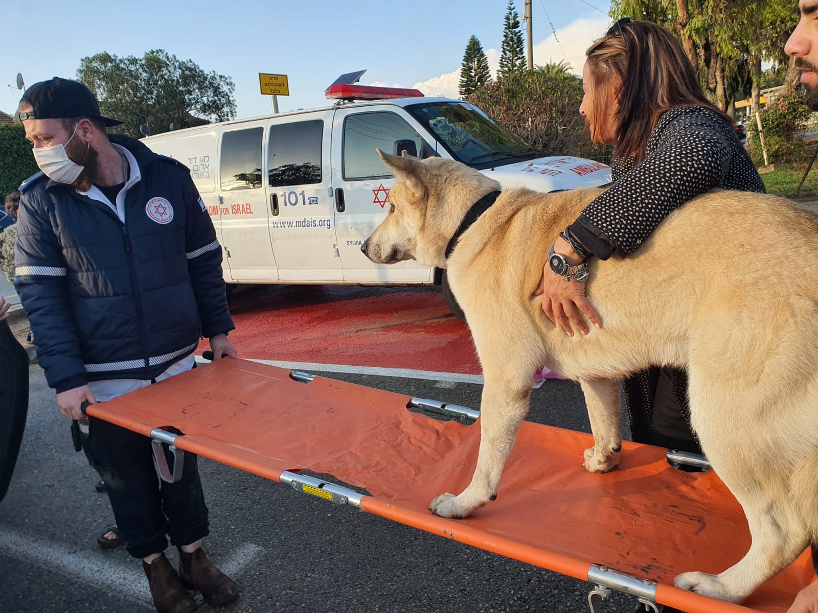 קאיו, כלב אקיטה מגן יבנה, ברח מביתו ונפגע באורח קל ממכונית ברחוב. דקות לאחר מכן, הגיע הכלב אל תחנת מד"א ודרש טיפול. אנשי מד"א איתרו את בני המשפחה החוששת, שחיפשו אותו במשך ארבע שעות ברחבי העיר. כשהגיעו לפנות אותו לווטרינר – הוא הסכים להתפנות רק באמצעות אלונקה ובסיוע של הצוות הרפואי.